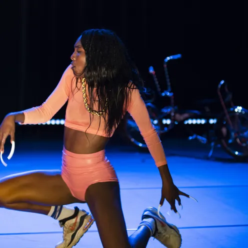 Ab 18:45 laden Studierende dich vor der Vorstellung zu einer körperlichen Einstimmung auf die Performance ein. Tanzkenntnisse sind nicht erforderlich.