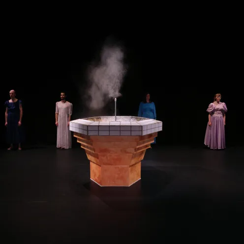 70 Minuten, ohne Pause. Die ersten 10 Min finden in Dunkelheit statt.