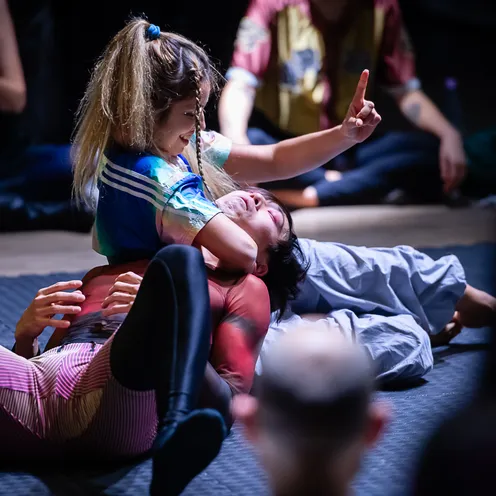 Inspiriert vom Playfight* und der Playfight-Community entwickelt Kollektiv ZOO gemeinsam mit Rangler:innen ein Format zwischen Aufführung und Spiel, das sich auf die Suche nach neuen Formen des Dialogs begibt und ein Forum des körperlichen Sprechens eröffnet. Kämpfen, Spielen und Rangeln bringen die Gruppe in eine experimentierfreudige und körperbasierte Kommunikation fernab der gesprochenen Sprache.